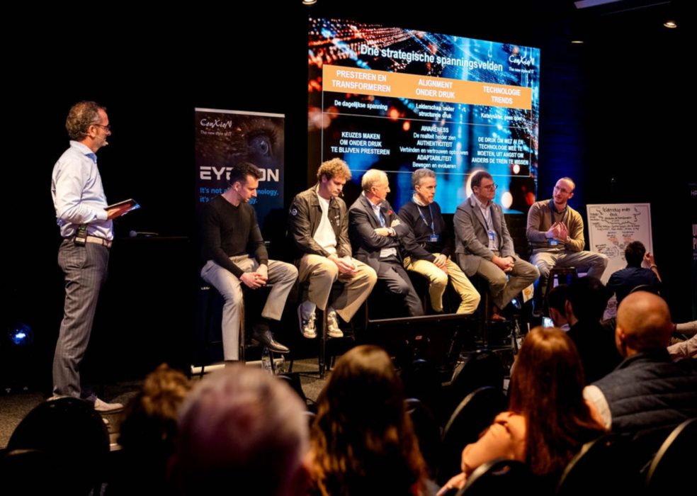 We bevinden ons in een oud laboratorium, op uitnodiging van ConXioN. Experimenten worden hier nietmeer uitgevoerd, maar vroeger stond het gebouw wel al in het teken van innovatie en groei, of kort gezegd: transformatie. Daarom begrijpen we de keuze van ConXioN om Eyes On 2026 hier te laten doorgaan des te meer. Tijdens het event staat één vraag centraal in het panelgesprek: hoe blijf je vandaag presteren terwijl je tegelijk je bedrijf klaarstoomt voor morgen? Moderator Olivier Van Duüren steekt van wal: “De echte vraag die een bedrijf zich zou moeten stellen is: kan ik transformeren?”